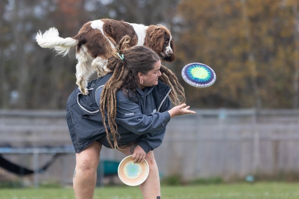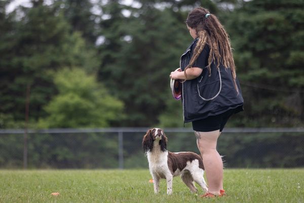 Sarah’s most recent addition is Frankie the Springer Spaniel. Frankie enjoys coming out on Sarah’s hikes with her dog walking business, as well as assisting her in all of her dog training classes. Frankie has competed in dock diving (Dock Senior title), and has been competing in disc dog competitions. They are starting to learn freestyle for disc together, but her greatest joy is running free in the woods at the lake.