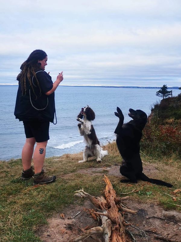 Sarah is a dog trainer and dog hiker that lives in Dartmouth, Nova Scotia. She began working with dogs in 2009, starting out working with a bully breed rescue in Ontario. She also helped organize, fundraise, and foster for several other rescue groups locally, fostering somewhere over 20 dogs and puppies. She also founded and ran a non-profit group helping low income and street involved people get health care and food for their pets. She also worked at several local dog daycares in the area as well as volunteering at the local SPCA, assisting in hoarding and puppy mill situations.